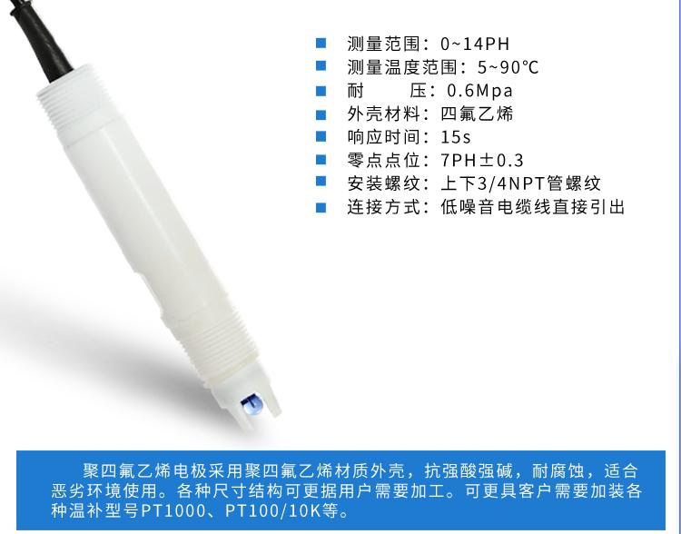 聯測SIN-5013A四氟電極應用于紡織印染、工業廢水、自來水廠、污水處理廠、電鍍廢水等腐蝕性較強的介質。